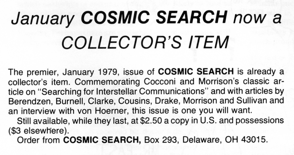 Cosmic Search: Issue 2(Volume 1 Number 2; March 1979) [Click on each advertising image below to obtain a larger image. The page in the magazine on which each ad was found in noted above the image.]