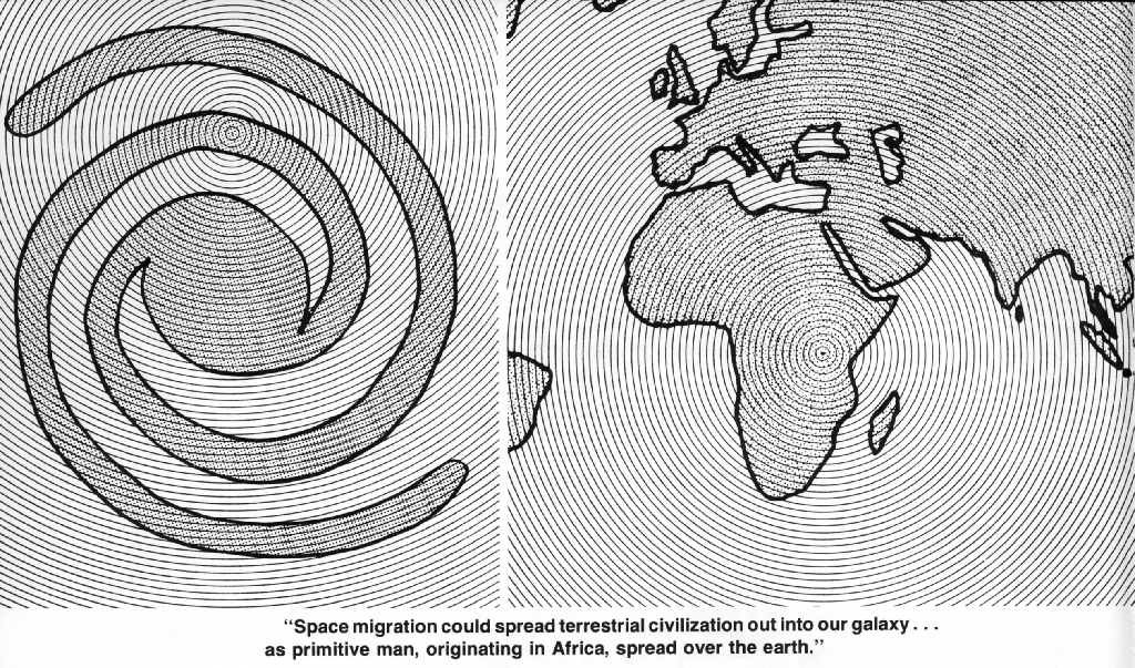 In time, space migration could spread terrestrial civilization out into our galaxy. Now the key question here is, how long will this take by comparison with the characteristic time for independent evolution?