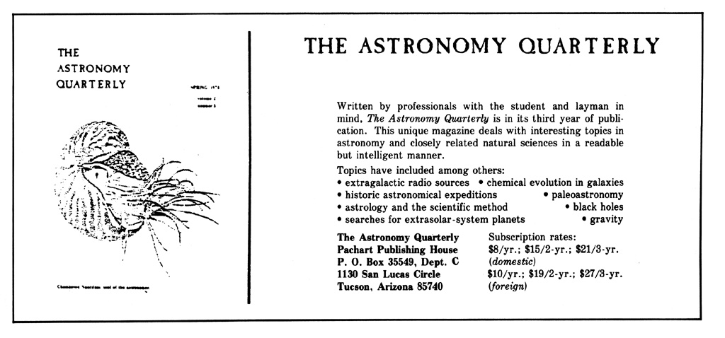 Cosmic Search: Issue 7(Volume 2 Number 3; Summer (July, Aug., Sept.) 1980) [Click on each advertising image below to obtain a larger image. The page in the magazine on which each ad was found in noted above the image.]