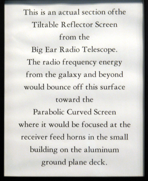 In the same room that contains displays about the Big Ear radio telescope