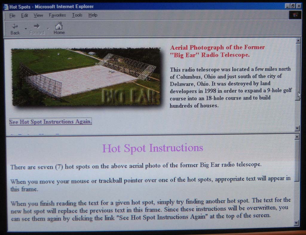 This shows a scale model of the Big Ear radio telescope