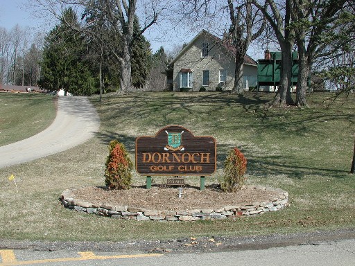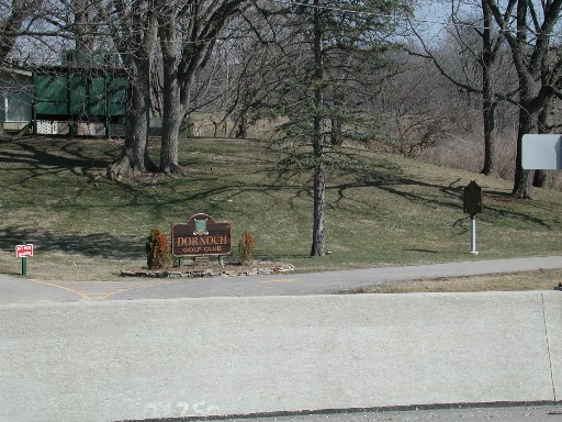 In this photo you not only see the entrance to the Delaware Golf Club (formerly, Dornoch Golf Club) and its sign, but near the right edge of the photo is our Big Ear Historical Marker.