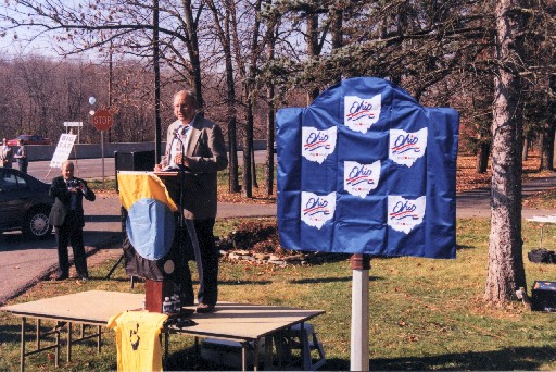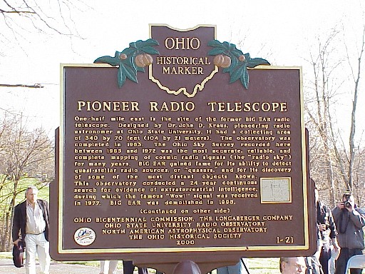 To Bob's left is the Big Ear marker with an Ohio Bicentennial Commission